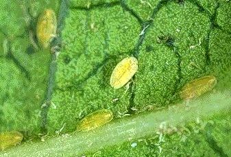 As fêmeas completamente desenvolvidas apresentam uma carapaça oval convexa de 7 a 9 mm de comprimento por 3,5 a 4,5 mm de largura, e coloração parda acizentada com estrias escuras no dorso (figura ao lado). Por volta de novembro, a coloração das carapaças se altera para marrom escuro (figura abaixo), estando elas repletas de ovos no seu interior. Cada fêmea oviposita cerca de 2.000 ovos, branco-rosados (figura abaixo), que se assemelham a um pó farinhento. Após finalizar a oviposição, a fêmea morre, porém a carapaça continua a proteger os ovos durante a incubação que dura, conforme as condições ambientais, de 15 a 30 dias. |